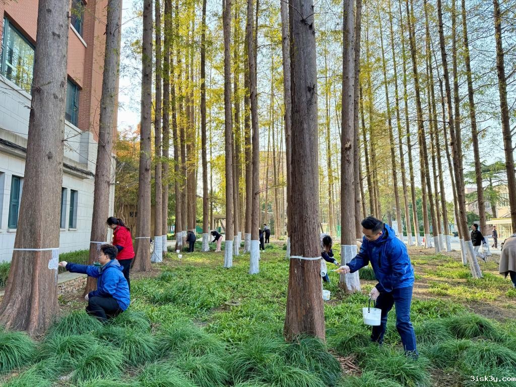 很快,整片树林都穿上了雪白的“冬衣”,一眼望去,像是一排排守护校园的忠诚卫士,成为校园一道亮丽风景线。学生们纷纷表示,通过此次活动既学习了树木防虫害知识,也感受到后勤服务人员日常劳作的辛劳,培养了热爱劳动、尊敬劳动的意识,树立了正确的劳动价值观。后续,后勤管理与保障处将在各校区推动树木涂白劳动实践活动,教育引导广大学生爱护校园、美化校园,通过爱护树木来营造树人环境。