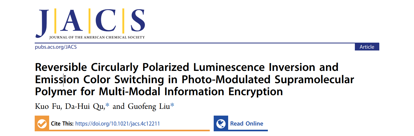 化学科学与工程学院刘国锋课题组最新研究成果光驱动圆偏振发光信号的原位可逆调控发表于《美国化学会志》