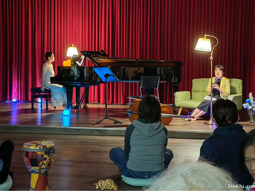 音乐会的开场部分以巴赫的经典名作《羊儿安静地吃草》作为序章,隋欣老师演奏的钢琴旋律柔和而细腻,宛如春日的和煦微风,引领现场观众缓缓闭上双眼,在音乐家的引领下,以身体语言传达内心的感受。继而肖邦的《雨滴》前奏曲进一步深化了情感的表达,使现场氛围达到了更为微妙的情感层面,观众们在音乐的渲染下,仿佛感受到了雨滴轻拂心湖的波纹,心灵得到了温柔的抚慰。随后,德彪西的《月光曲》犹如夜空中最耀眼的星辰,在周彬老师的疗愈指导下,使得每一位参与者得以实现心灵的释放与宁静。