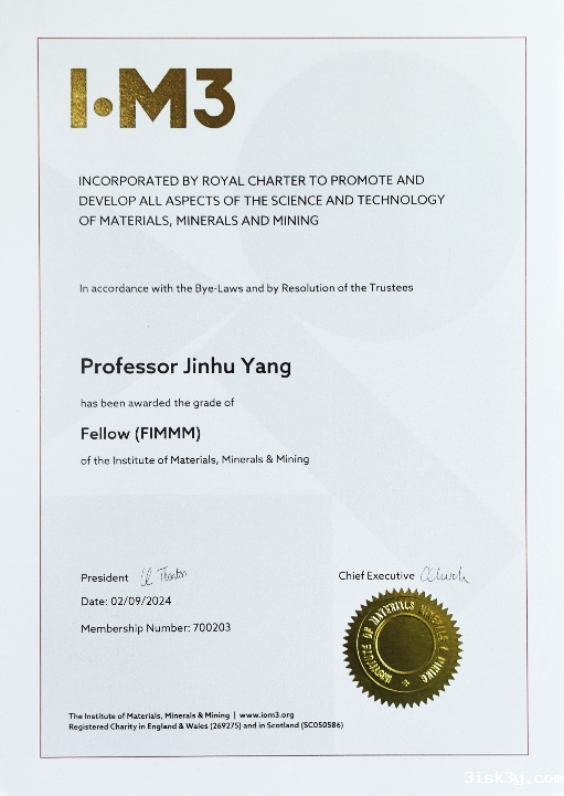 英国材料、矿物和矿业学会(The Institute of Materials,Minerals & Mining,简称IOM3)是具有世界性影响力的英国工程类学会,也是英国王室特许学会,其宗旨是促进材料科学与工程、地质学、采矿学以及相关技术的发展,是全球材料和矿业界的权威机构。根据专家提名推荐,学会遴选国际上在材料、矿物、采矿或其他IOM3所涵盖的技术学科中取得重要贡献和成就的人士为学会会士。