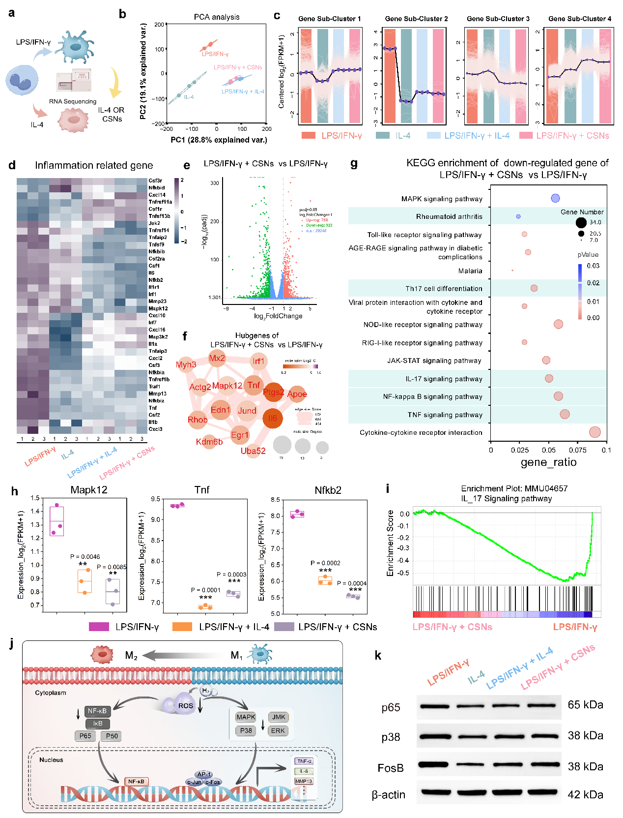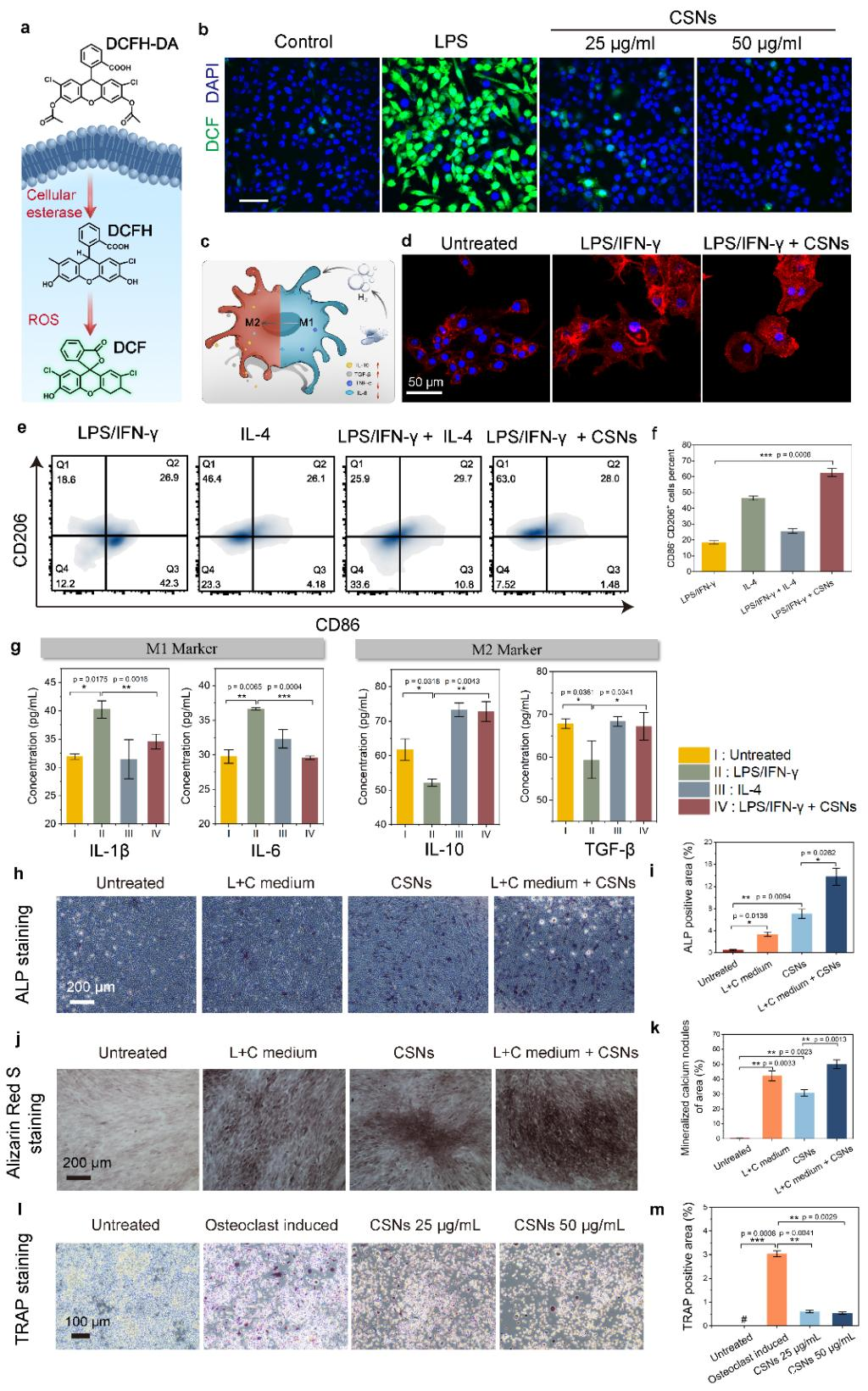 图5.硅化钙纳米片重极化M1巨噬细胞为M2的分子机制研究