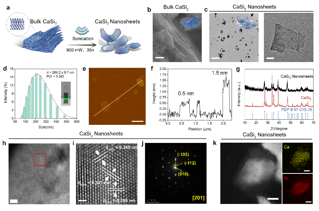 图2.硅化钙纳米片的制备和结构表征