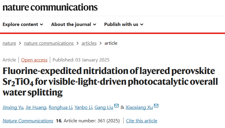 化学科学与工程学院徐晓翔课题组氟促进氮化层状钙钛矿材料Sr2TiO4,实现可见光驱动全分解水反应,研究成果发表于《自然·通讯》