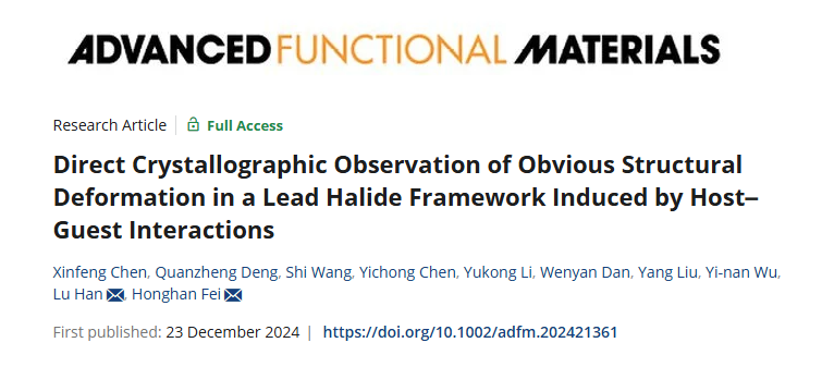 化学科学与工程学院费泓涵/韩璐团队研究发现晶体学直接观察主客体作用引起卤化铅结构形变,成果发表于《先进功能材料》