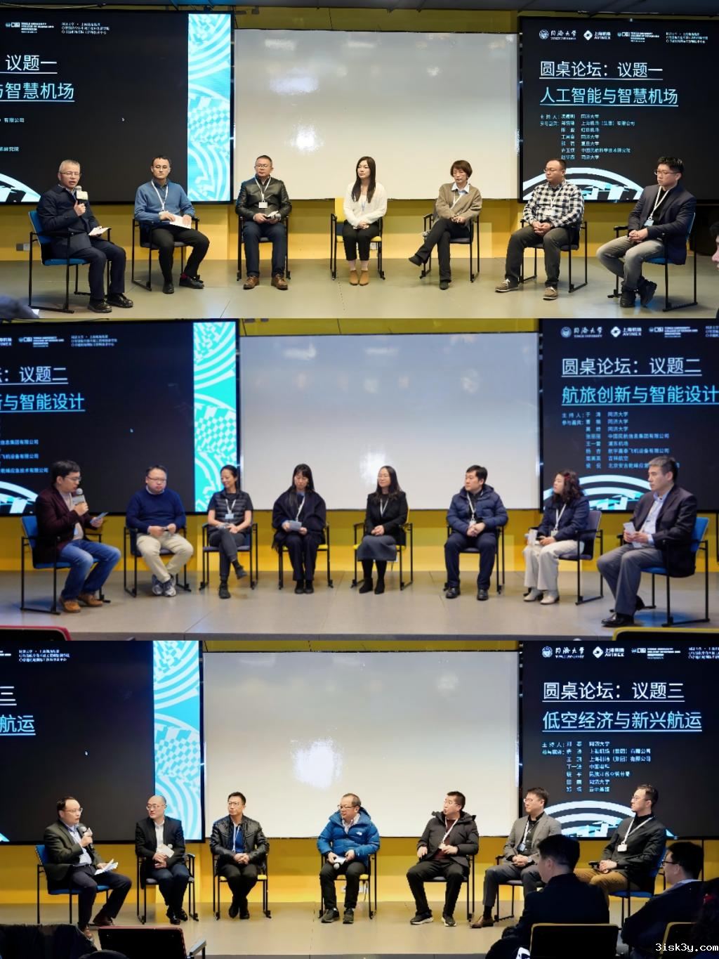 在圆桌论坛环节,3组共22位专家分别围绕“人工智能与智慧机场”“航旅创新与智能设计”“低空经济与新兴航运”等议题展开探讨。
