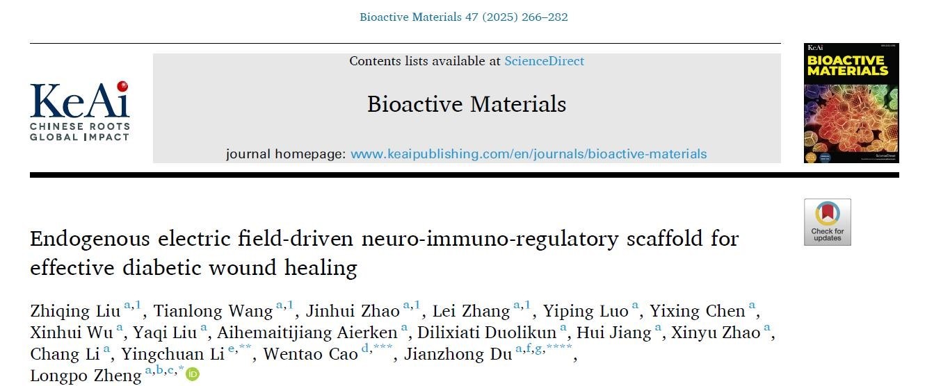 附属第十人民医院郑龙坡团队研究内源性电场驱动的神经免疫调节支架用于糖尿病伤口的有效愈合,成果发表于《生物活性材料》