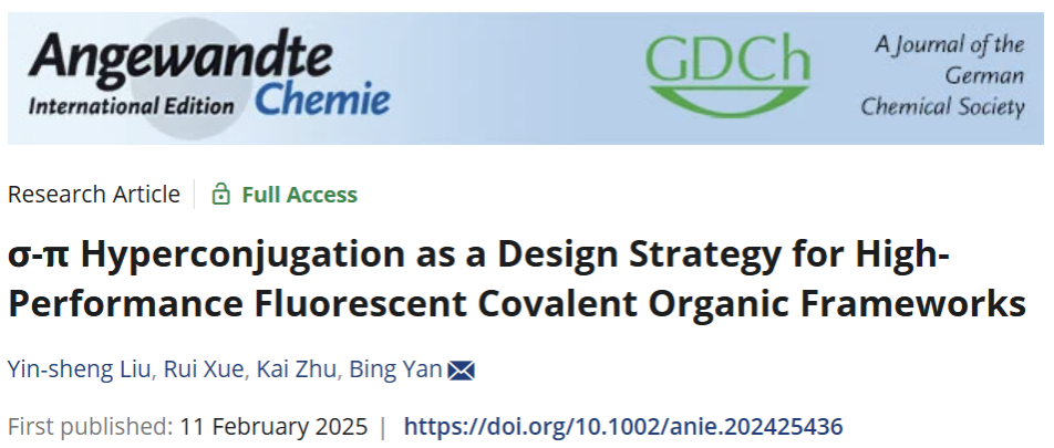 化学科学与工程学院闫冰团队利用σ-π超共轭作为高性能荧光共价有机框架的设计策略,成果发表于《德国应用化学》