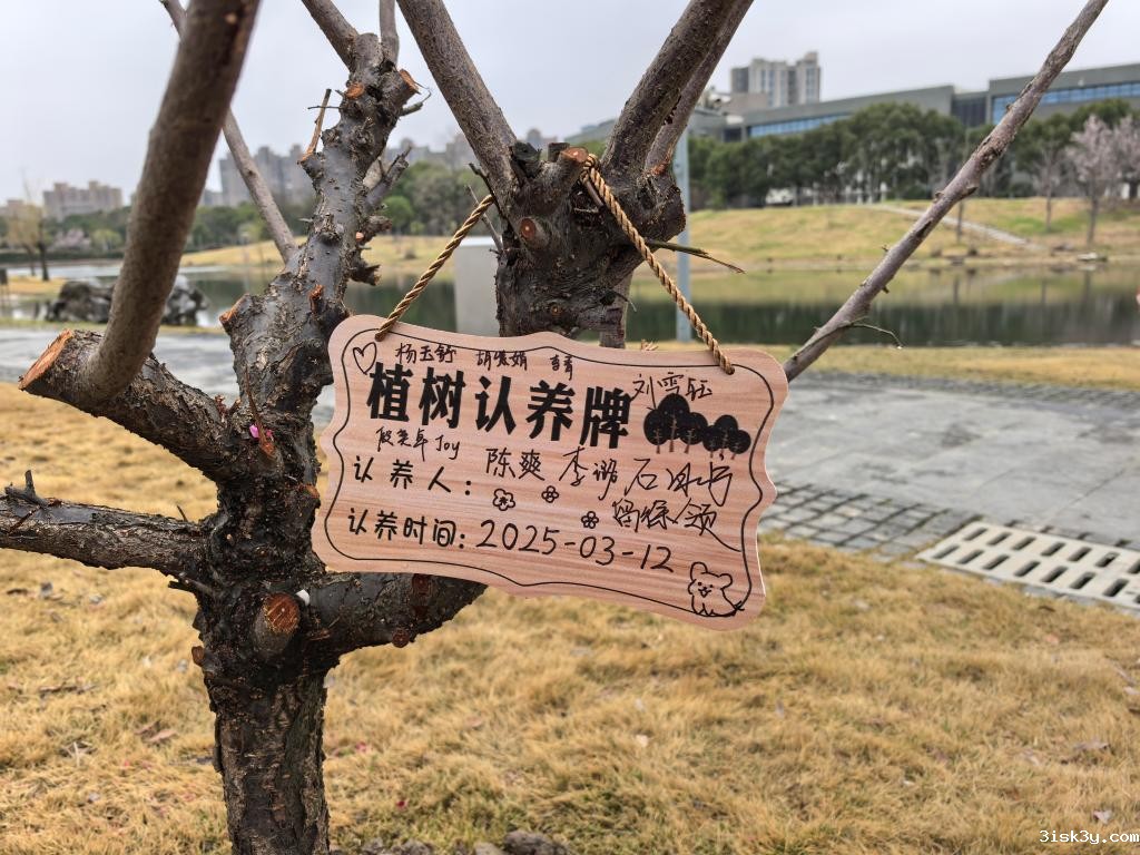 种植完毕后,同学们还为每一棵亲手栽下的梅树挂上专属铭牌。同学们纷纷表示,能在第47个植树节之际打造专属自己的梅园,这不仅仅是一次劳动育人实践,更是一份对母校的深情回望与未来重逢的期许。他们相约,无论身在何方,都会常回母校,来嘉定梅园走走,看看这片由他们亲手栽下的绿意盎然,回忆在母校的美好时光和青春华芳,见证岁月流转中的同济之美。