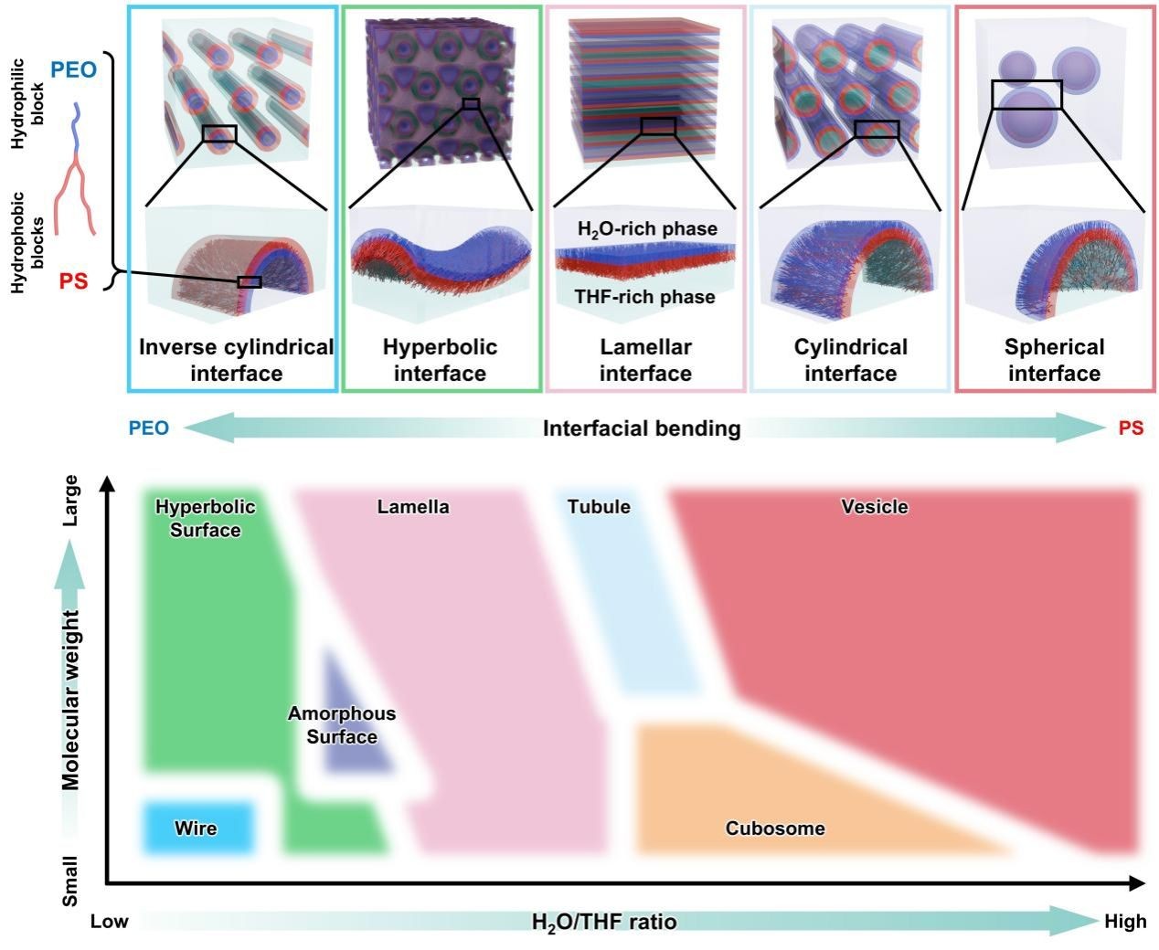 该研究展示了深度学习方法在挖掘复杂自组装体系的合成规律方面的巨大潜力。突破了传统依靠大量试错实验进行共聚物自组装研究的限制,基于实验数据集和深度神经网络有效探索了杂臂星型嵌段共聚物的自组装体系。对自组装行为与合成参数之间相关性进行了探索,揭示了自发曲率在决定杂臂星形分子自组装中的关键作用。该研究展现了深度学习方法在利用实际数据挖掘复杂自组装系统隐含合成规律的潜力,对软物质领域的研究具有重要意义。