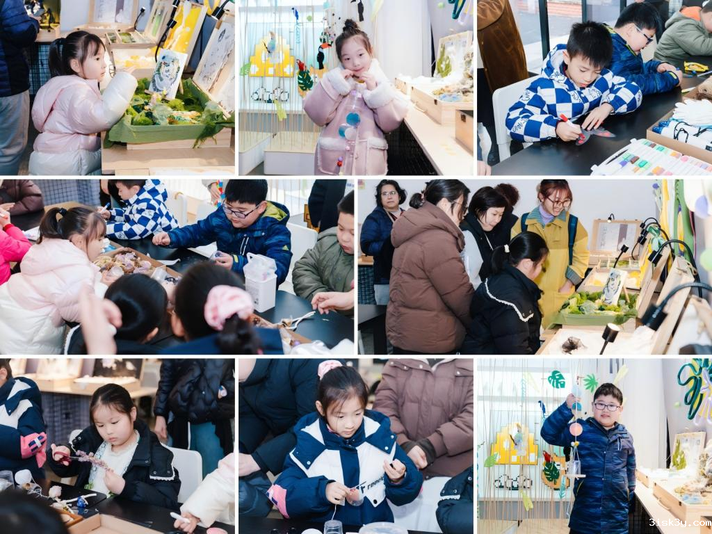 签约仪式后,“四平空间创生行动”新一季的首场共创活动举行。活动以自然主题教学课题成果为核心,通过展览与共创工坊,带领居民们走进一场自然、设计与社区共融的创意体验。设计创意学院研究生段静怡和本科生们为社区居民详细讲解了作品的灵感与设计细节,带领现场的大小朋友们体会创作中神奇的自然世界。