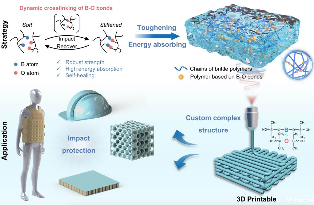 图2、基于B-O动态配位键的增韧与能量耗散策略可有效提升复合材料力学性能,为3D打印抗冲击结构提供新解决方案。