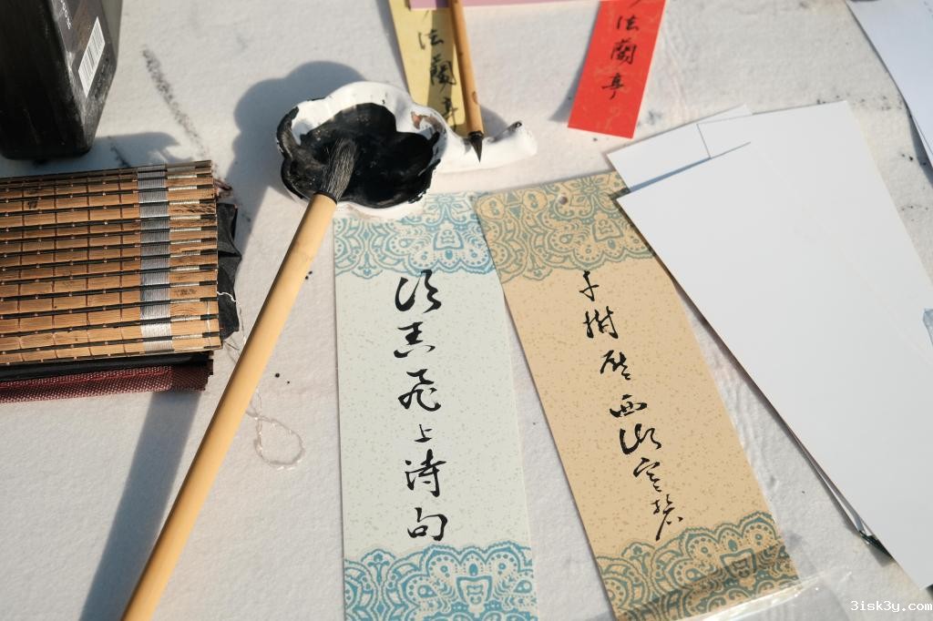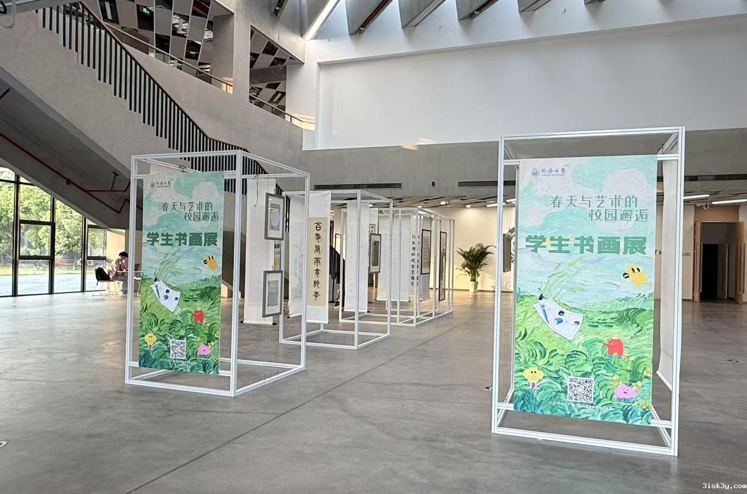 活动现场设置了多个艺术体验区,包括自由艺术协会的蓝晒蓝染手作、匠人社的传统香囊制作、汉服社的古风造型体验、点墨轩书画社的书签团扇手绘、学生民乐团的乐器手把手体验教学等互动。桌案前人头攒动,各类传统文化艺术体验深受观众欢迎。艺嘉楼南侧大厅内同步展出为期8天的师生书画展,吸引对诗词歌赋、笔墨丹青感兴趣的师生驻足欣赏。
