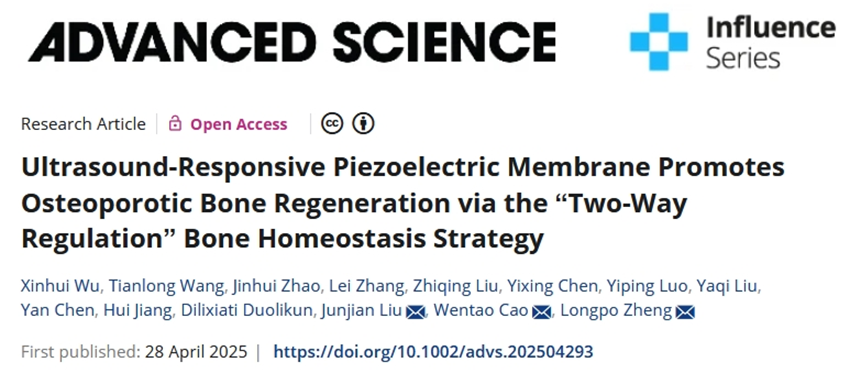 随着全球人口老龄化加速,骨质疏松症已逐渐成为一种常见的慢性疾病,主要影响老年人和绝经后妇女。骨质疏松的特征是骨微结构破坏、骨量减少和骨脆性增加,成骨细胞介导的骨形成减少,破骨细胞介导的骨吸收增强,增加了骨折和骨缺损的风险。当前的研究主要集中在促进骨形成或抑制骨吸收,但单一目标治疗策略的骨修复效果有限。鉴于此,taptap网页版登录kino附属第十人民医院郑龙坡教授团队提出了一种“双向调控”骨稳态策略,可同时调控成骨和破骨细胞的分化进程,以恢复骨稳态并促进骨质疏松性骨修复。相关研究成果近日在线发表于国际权威期刊《先进科学》(Advanced Science),论文题为“Ultrasound-Responsive Piezoelectric Membrane Promotes Osteoporotic Bone Regeneration via the ‘Two-Way Regulation’ Bone Homeostasis Strategy”。