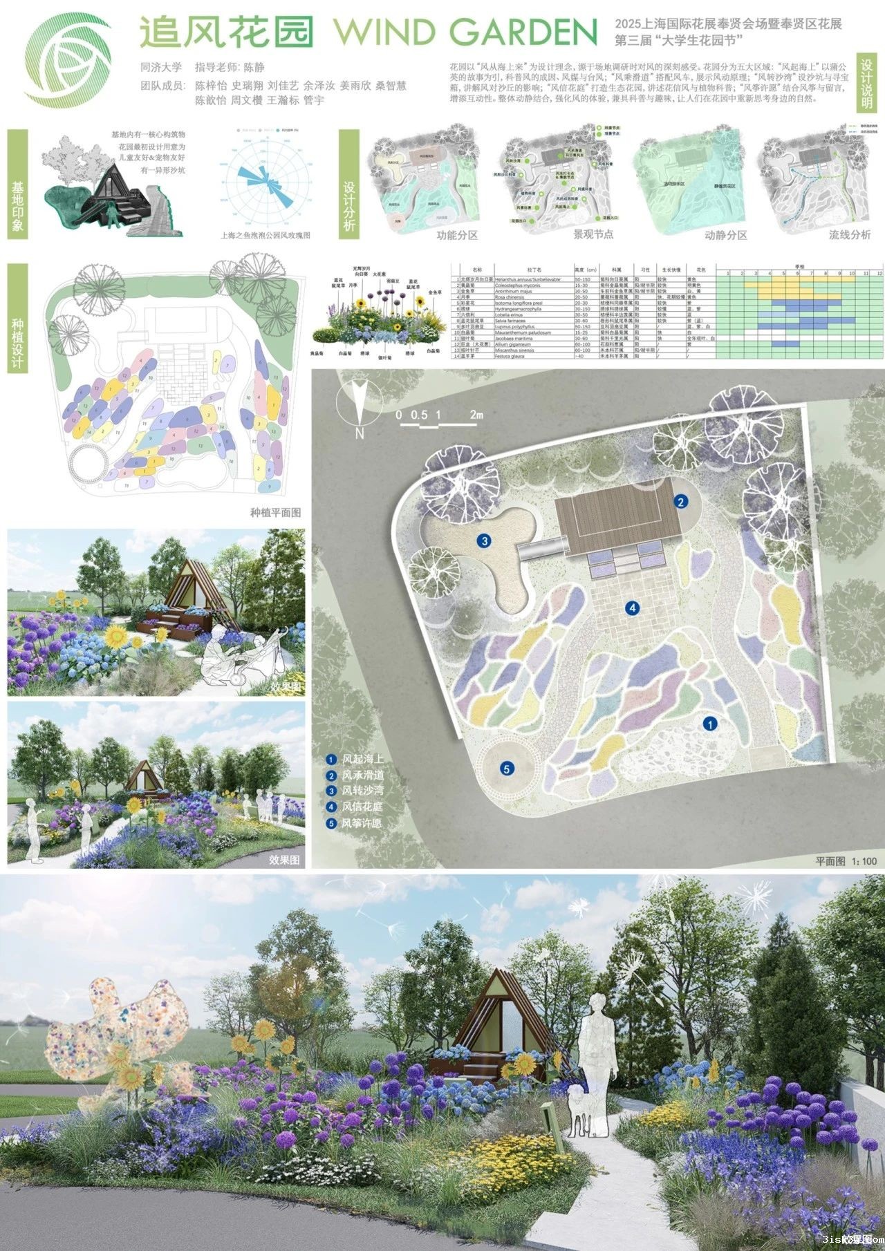 “追风花园”项目不仅是团队专业能力的展示,也是对绿色生活方式的积极倡导。花园以“重新思考身边的自然:风”为主题,围绕蒲公英“风宝”的旅程展开结合风的多样形态和生态意义,设置了“风起海上”“风乘滑道”“风转沙湾”“风信花庭”“追风许愿”五大分区,每一处景观节点都融合了观赏、互动和科普功能,让参观者在春日的微风中,体验风的力量与美好,了解风能、地貌塑造、植物季候等丰富知识。花园通过生动的故事线和趣味装置,营造出童话般的氛围,鼓励大家关注自然、亲近自然,感受人与环境的和谐共生。展览将持续至5月22日。