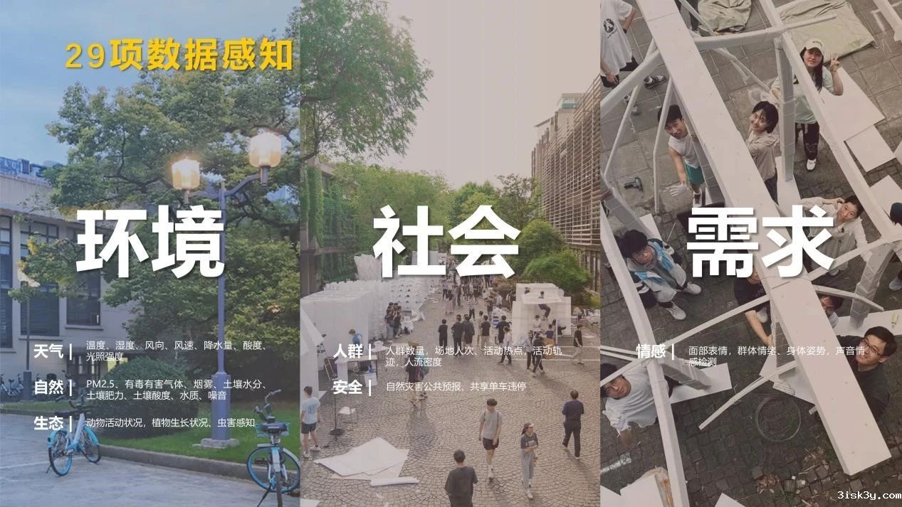“冲之场”立足于环境、社会、需求三大场景,涵盖29项数据感知,包括:温度、湿度、风向、风速、降水量、酸度、光照强度、PM2.5、有毒有害气体、烟雾、土壤水分、土壤肥力、土壤酸度、水质、噪音、动物活动情况、植物生长情况、虫害感知、人群数量、场地人次、活动热点、活动轨迹、人流密度、自然灾害公共预报、共享单车违停、面部表情、群体情绪、身体姿势、声音情感检测。