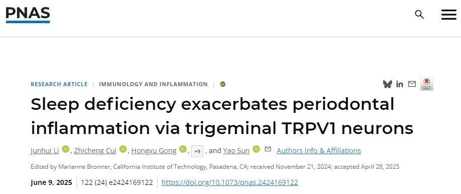口腔医学院孙瑶团队研究发现睡眠不足会加重牙周炎,成果发表于《美国科学院院刊》