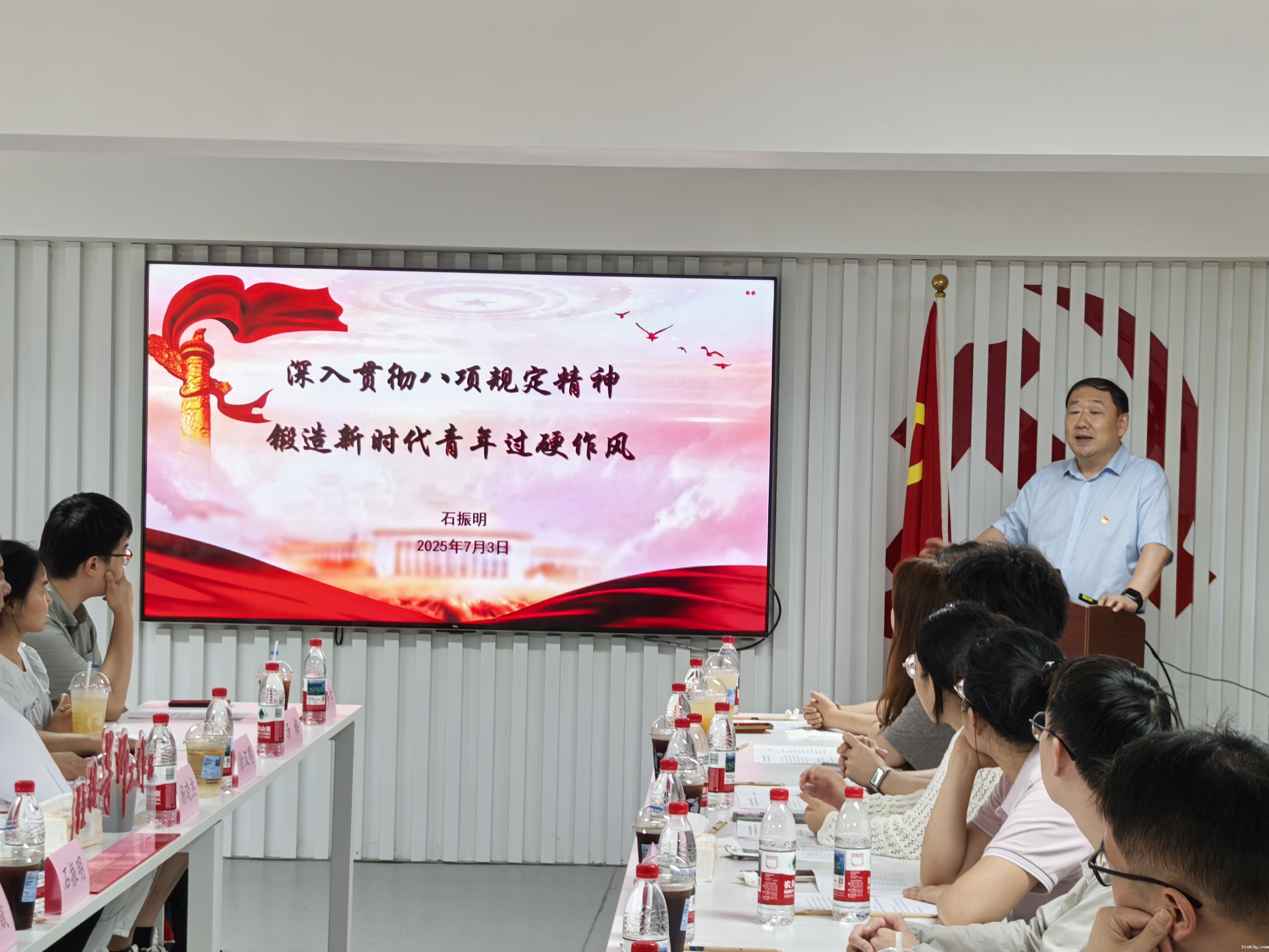 石振明围绕“破题立矩、铸魂立根、正行立身”三个关键词,深入解读了中央八项规定精神对青年大学生的引领意义。他表示,青年学子要树立远大理想,在纪律星空中追寻“初心坐标”,以黄文秀、张桂梅等榜样为镜,让“为民务实”的价值追求在校园蔚然成风,争做服务人民的“践行者”;强化廉洁意识,坚守廉洁自律的“座右铭”,在成长拔穗期扣好廉洁自律的“第一扣”,杜绝贪图享乐、突破底线的行为;涵养务实品质,在日常学习中扎实作风、求真实干,勇做求真务实的“实干家”。他鼓励同学们以中央八项规定精神为指引,在学习工作中力戒形式主义,在生活交往中践行勤俭节约,让求真务实成为处事常态,让纪律规矩融入举手投足,以点滴行动让中央八项规定精神在校园落地生根,在踏实前行中书写充实而有意义的青春篇章。