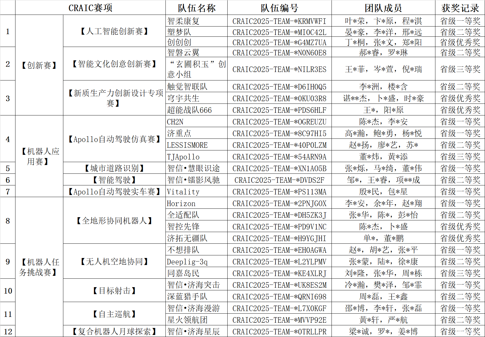 2025CRAIC省赛获奖队伍名单