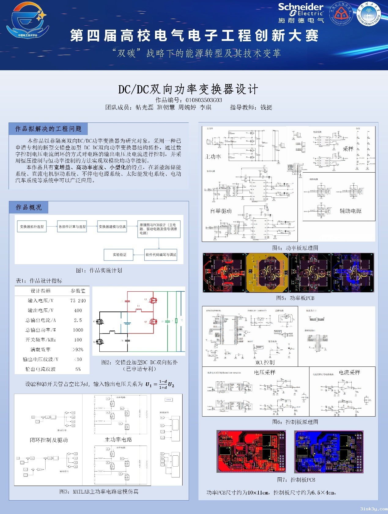 决赛中,帖光磊、周婉婷、班朝慧、李琪团队(指导教师钱挺)和周锡帆、颜涛、杨济玮、颜辅佐、田珂菲团队(指导教师胡波、张文豪)围绕“DC/DC双向功率变换器设计”赛题准备充分、装置可靠,在现场测试中表现优越,双双荣获全国特等奖,其中帖光磊团队凭借创新的拓扑结构斩获“杰出创新奖”。任蓦函、韩音黎、朱素蓉、姜惟、李国葳团队(指导教师张文豪、董子航)针对赛题“光储充一体化系统设计”,依托实际工业园区开展设计规划、绿色用能与经济核算,作品完整、设计合理,荣获全国二等奖。