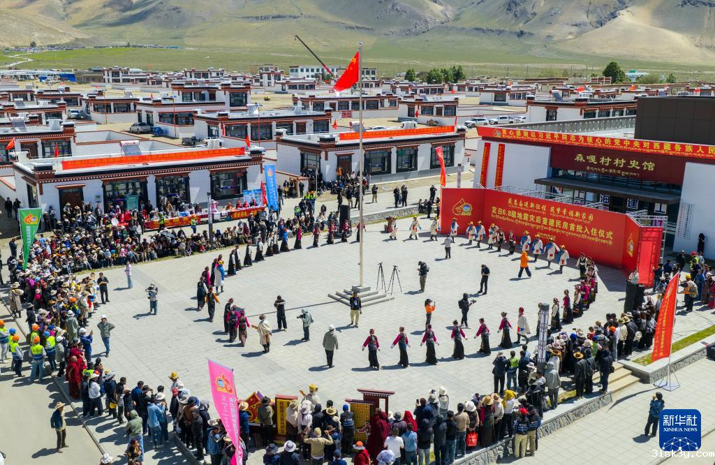 在西藏定日县森嘎村拍摄的“定日6.8级地震灾后恢复重建民房首批入住仪式”(无人机照片) 新华社记者 姜帆 2025年8月15日摄