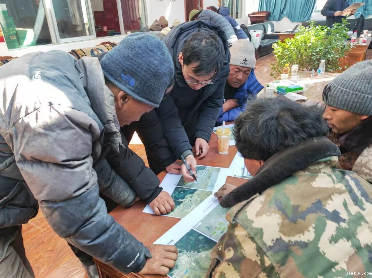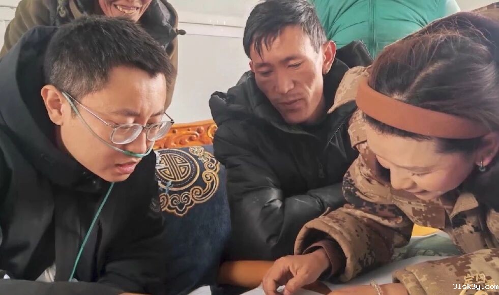 这一张照片上,一位同济设计师正一边吸着氧,一边与村民们面对面交流,向每户征询他们对新房设计方案的意见。这一幕工作场景,是同济驻场团队克服高原反应等身体不适,尽职履责、倾力奉献的生动缩影。
