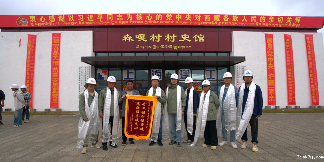 “专业设计促重建,高效服务暖民心”,在森嘎村交房之际,长所乡人民政府为同济团队送来了鲜红锦旗,献上了洁白的哈达。村民们还紧紧握住同济队员们的手,连声说着“扎西德勒”。