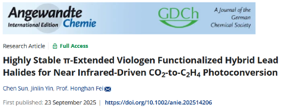 化学科学与工程学院费泓涵课题组通过π-共轭紫精功能化的碘化铅实现近红外光催化CO2还原至C2H4,成果发表于《德国应用化学》