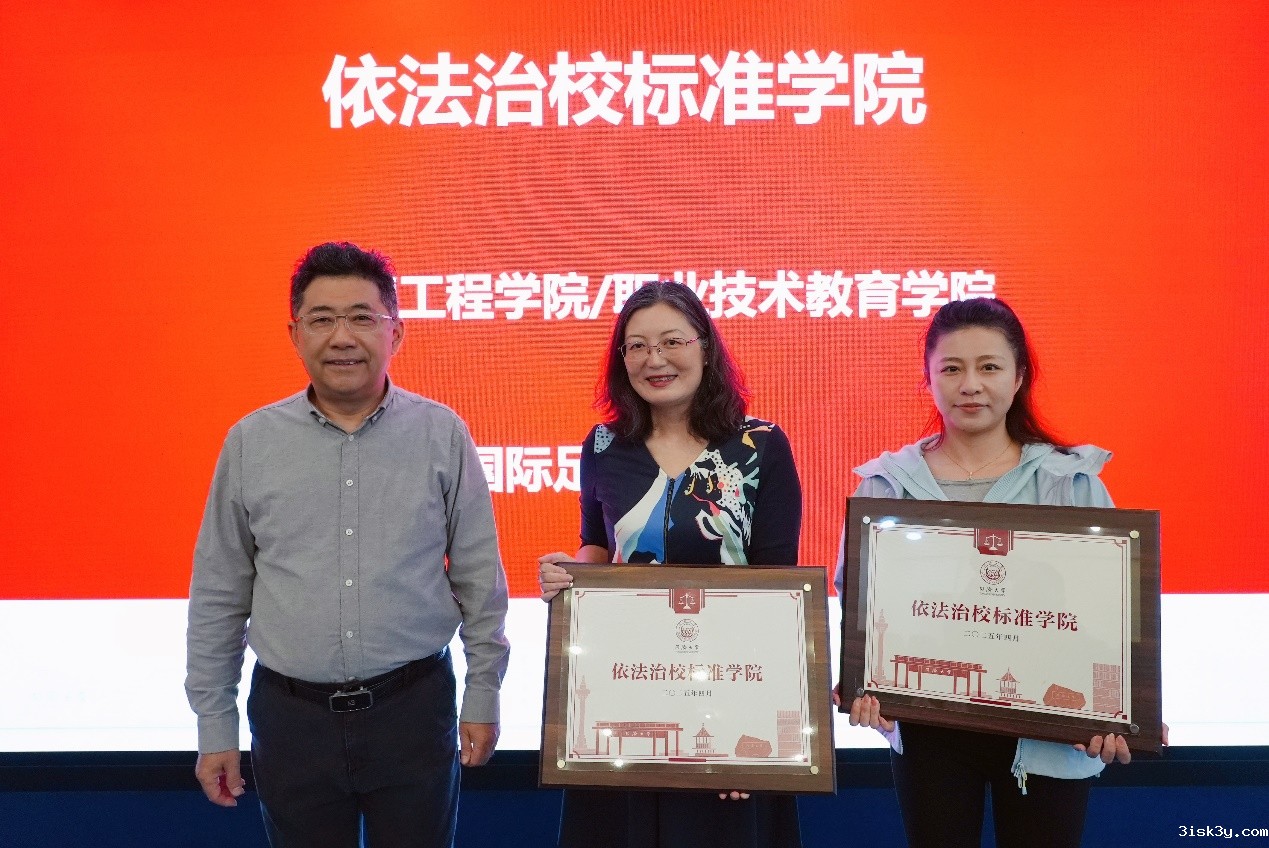 会议宣读了taptap网页版登录kino第四批“依法治校示范学院”“依法治校标准学院”名单,吕培明为获评学院授牌。其中,国豪书院、国家卓越工程师学院获评“依法治校示范学院”,中德工程学院/职业技术教育学院、国际足球学院获评“依法治校标准学院”。