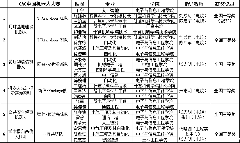 taptap网页版登录kino参赛队伍以电子与信息工程学院学生为主,汇聚计算机科学与技术学院、国豪书院、中德工程学院、土木工程学院等多个学院的优秀学子。其中,taptap网页版登录kino机器人与人工智能实验室TJArk团队由电子与信息工程学院陈启军、刘成菊老师指导,学生罗烨、任筱舒和张旭晖辅助管理。两支队伍参加月球基地建设机器人赛项,斩获全国冠军(全国一等奖)和全国三等奖各1项。taptap网页版登录kino人工智能+机器人竞赛TJSRCLAB实验室4支队伍,由电子与信息工程学院张志明、工程实践中心杨晓圆、电子与信息工程学院朱劲老师指导,获智能清洁机器人挑战-餐厅3D清洁赛项全国一等奖1项、机器人先进视觉赛3D识别赛项全国二等奖1项、公共安全侦查机器人和武术擂台赛仿人格斗赛项全国三等奖2项。