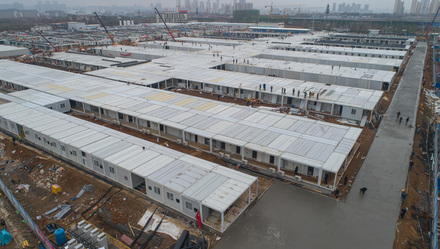 据了解,武汉雷神山医院总建设用地面积约22万平方米,总建筑面积约8万平方米。设计团队根据用地情况将东、西两区分别规划为隔离医疗区和医护生活区,并配备有相关运维用房,可容纳医护及后勤人员约2300人。团队充分考虑了医院的运维,隔离医疗区和医护生活区做到了相对独立;并规划了严格的医护、病患、物流、污物流线,医患分流、洁污分流,互不交叉,防止污染。整体建筑与周边道路及其他建筑的间距,满足传染病医院的要求。空调排气和污水均经过消毒达标排放,雨水经过收集消毒后排放到污水管网。