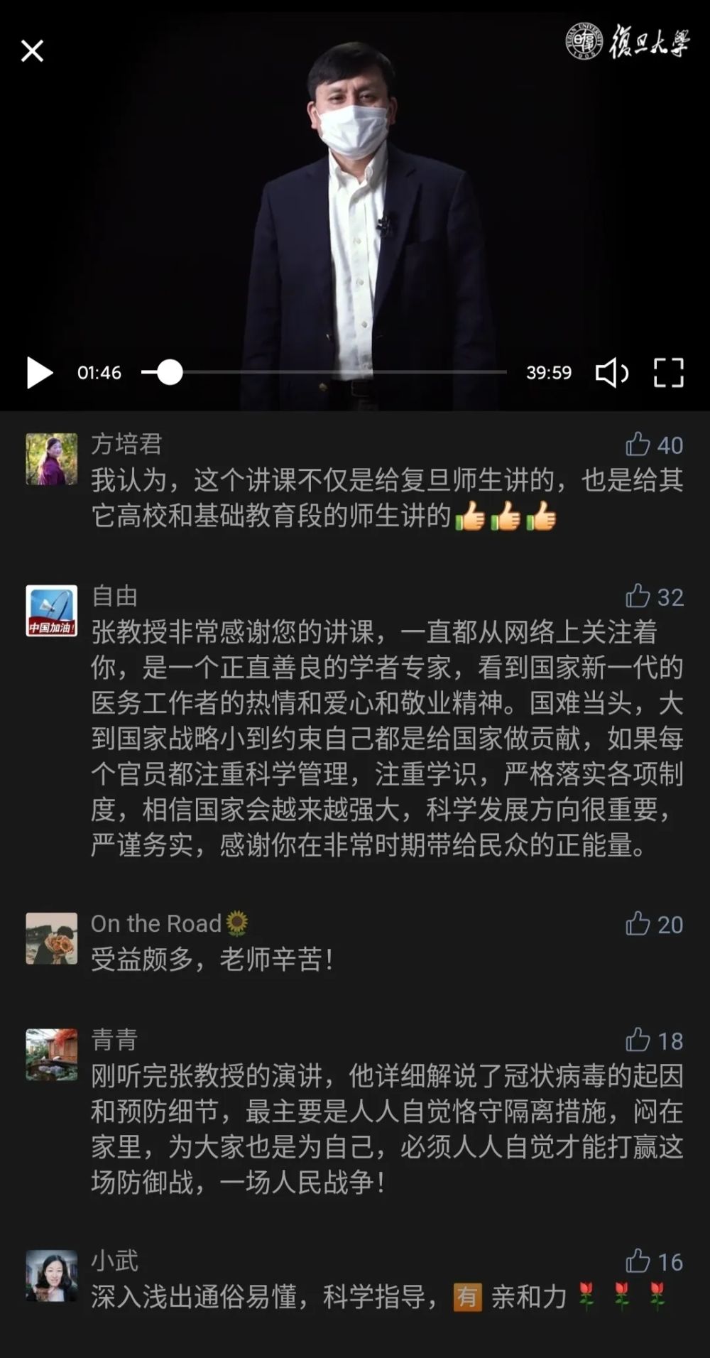 “硬核教授”张文宏开讲复旦大学“新冠肺炎防控第一课”