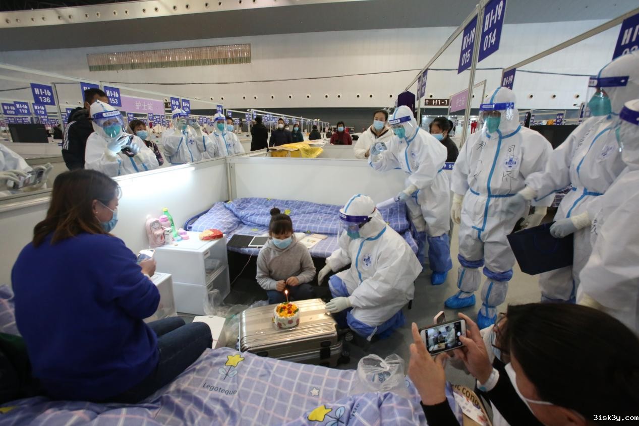 【文汇网】 临时集中隔离收治点,同济医院“大白”围着患儿唱起生日歌