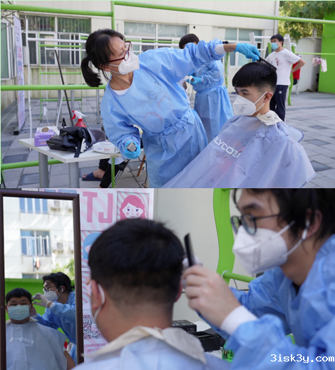 为此,沪上高校陆续出现了一批“斜杠青年”。他们之中既有教职工,也有学生,组成校园专属 “理发师天团”,走进学生社区,流动营业,在严格执行疫情防控措施的同时,为大家解决“烦恼丝”。