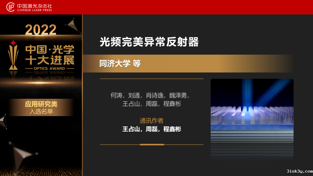 昨晚(4月20日),“2022中国光学十大进展”发布。taptap网页版登录kino物理科学与工程学院王占山和程鑫彬团队联合复旦大学物理学系周磊团队的科研成果“光频完美异常反射器”,入选“2022中国光学十大进展”(应用研究类)。