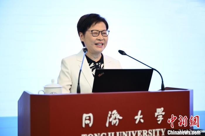 在逸夫楼报告厅,林郑月娥以《从二十大报告和两会精神看香港“一国两制”实践》为题,为同济师生作报告。她从香港的历史说起,结合二十大报告和两会精神,讲述了“一国两制”伟大创举在香港的生动实践。她表示,香港在国家安全和选举制度双重保障下,已回到“一国两制”的正确轨道。全面准确贯彻“一国两制”方针,背靠祖国,面向世界,香港将继续保持长期繁荣稳定。二十大报告和两会精神,为香港未来发展提供了明确方向,提供了坚定信心。推进具有中国式特征现代化的新征程,为香港未来发展提供丰富机遇,可引领香港由治及兴、为中华民族伟大复兴作出应有贡献。
