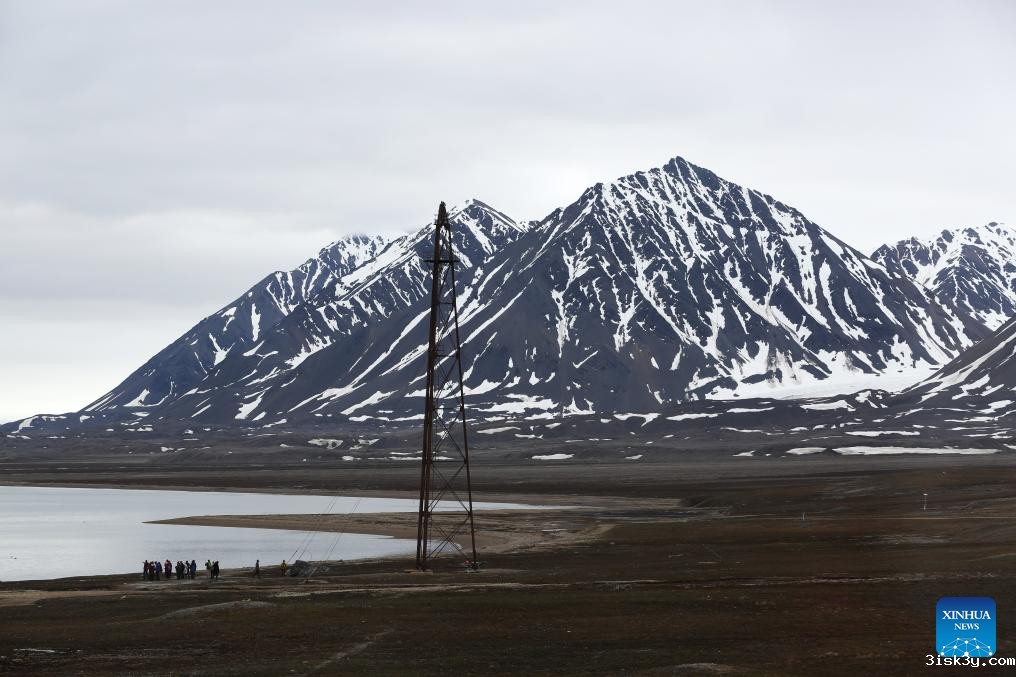 Tourists are seen near the mooring mast for Norwegian explorer Roald Amundsen's airship "Norge" in Ny-Alesund, Svalbard, Norway, on June 23, 2024. (Xinhua/Zhao Dingzhe)