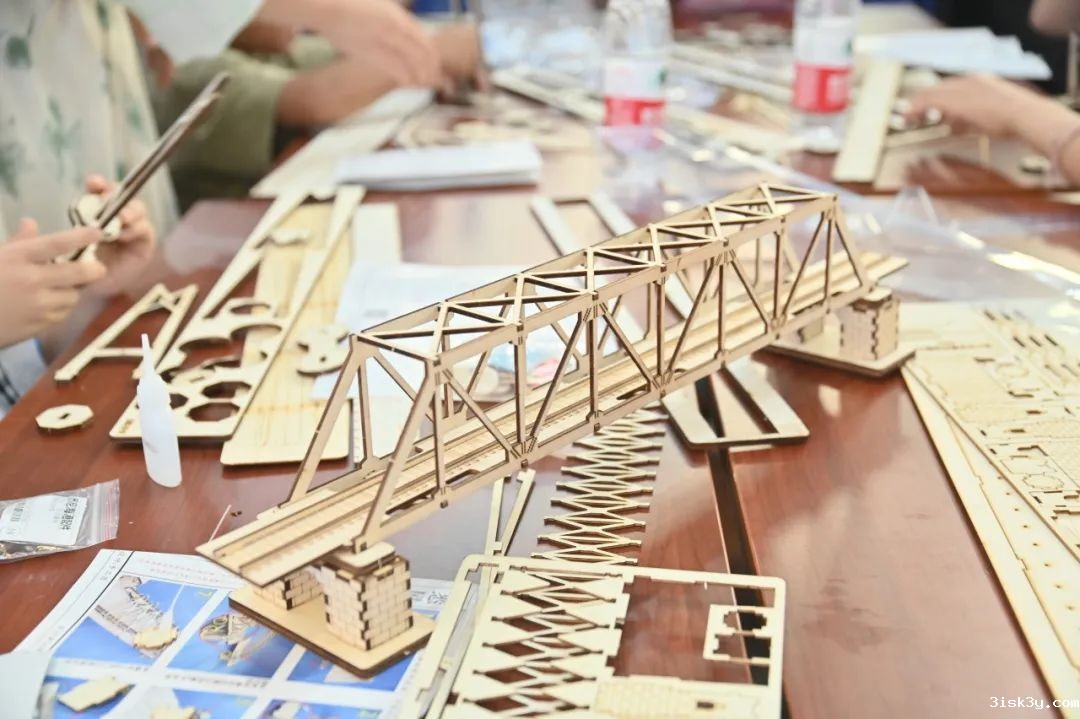 随后,现场开展“桥梁模型搭建”创意工坊。只见孩子们按照图纸,聚精会神地拼接、粘贴模型组件,将刚学到的理论应用于实践,进一步了解到桥梁的桥墩、桥塔、基础等结构,也在动手中体验着创新的乐趣。制作完成后,一场“桥梁时尚秀”更让大家展示作品,在时尚与科技的碰撞中领略桥梁文化的独特魅力。