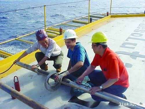 1999年,南海大洋钻探184航次工作照(左一为汪品先)。