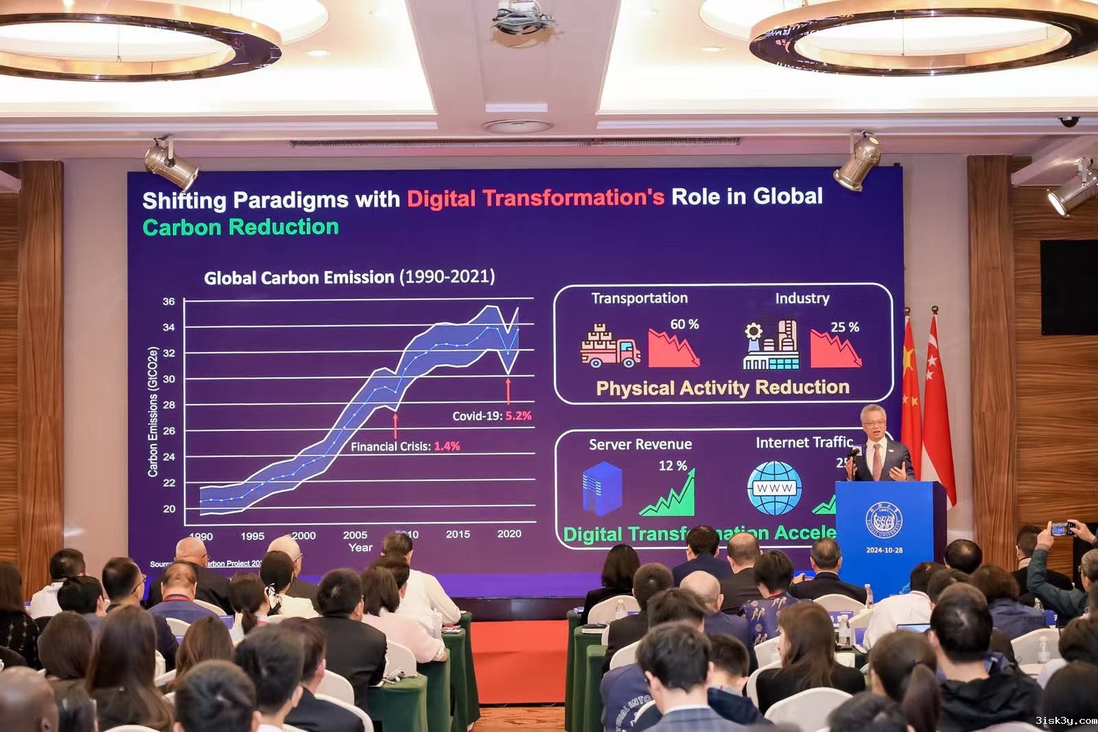 新加坡工程院院士、南洋理工大学教授文勇刚认为,人类社会正在进入数字化、可持续化双重变革的时代。尤其是在数字化变革中,大量活动从线下变成线上,对计算资源、服务器的耗费相当大。有预测显示,到2030年新加坡数据中心的耗电量会达到社会总耗电量的12%。更值得警惕的是,AI的大量运用还会增加碳排放的体量,对环境产生破坏性影响。