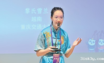 来自越南的黎氏雪兰来到中国之后,对武术产生了浓厚兴趣。图为她在比赛现场和大家分享自己学习武术的经历。