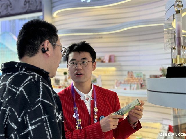 作为上海馆志愿者的“小管家”,李佳蕾属于机动岗,讲解岗哪里缺人他补哪里,所以需要熟悉整个讲解内容。他会从整体把握上海馆和馆内产品,将不同品类、不同特色的产品串联起来。三四千字的讲解词,李佳蕾顺得很快,他觉得死记硬背讲解词并不能很好地传达上海馆的理念,于是额外做了很多功课,查询每个板块、每个品牌背后的故事。“比如巴基斯坦盐灯,背后是巴基斯坦兄弟哈比和李明的进博故事。2021年他们第一次参展,在当时6天的展期内,两人销售了一整个集装箱的盐灯。会后的两个月,乘着进博的东⻛,他们又在常设商铺里卖出两个集装箱约5万盏盐灯。今年,他们又带来了巴基斯坦传承千年的文化遗产骆驼皮灯。”很多参观者对产品的价格、哪里可买感兴趣,都敦促李佳蕾去细化讲解词。