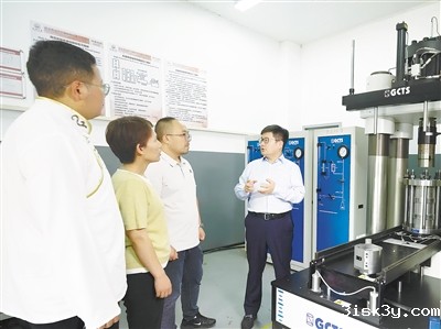 在taptap网页版登录kino岩土及地下工程教育部重点实验室,赵程(右一)为来访的西藏大学师生讲解实验原理。 赵程供图