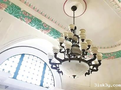 北苏州路入口处的旋转楼梯上,铜质的雕花和楼梯上的铜质防滑条,则依然是近百年前的旧物。天花板上的吊灯除了换掉几个灯泡外,也仍是1924年安装的那一盏。环绕着吊灯的被称为“奶油蛋糕”的粉红粉绿色石膏板吊顶花纹,则是从一层层后来被添加的白色涂料中剥离出来,按照当时颜色重新粉刷的。