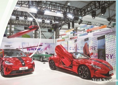 “上汽设计”展区,3辆酷炫的车以及空间内巨大的“穿越雕塑”将诸多设计元素串联过去与未来。本报记者 海沙尔 摄