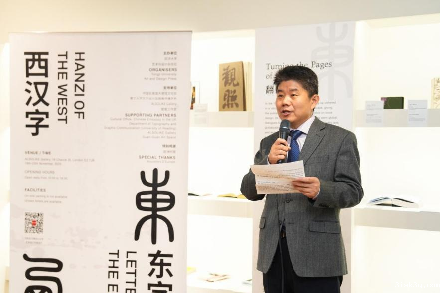 开幕式伊始,中国驻英国大使馆李立言公参发表致辞。他表示,“文字是传承文明的载体,语言是增进理解的桥梁。中文不仅属于中国,也属于世界,是中国人民贡献给全人类的公共文化产品。”他还强调,“本次展览是中英文化合作的交流成果,进一步拓展了文明对话的深度,响应习近平主席提出的全球文明倡议,以文化与创意为纽带,推动中英之间的文明互鉴与人文互动持续深化。”