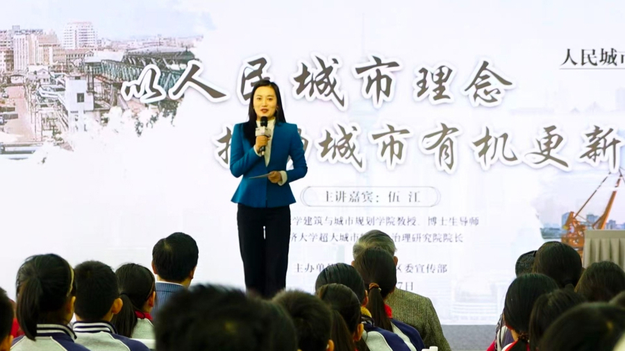 讲座深入探讨了如何将“人民城市人民建、人民城市为人民”的理念转化为具体行动。伍江表示,城市更新的核心价值在于不断完善城市功能,提高公共服务能力和空间品质。他以上海“15分钟生活圈”建设、老旧小区改造、滨水空间贯通等实践为例,说明城市更新应始终围绕人民需求,让城市不仅“好看”,更要“好用”,真正提升市民的获得感与幸福感。