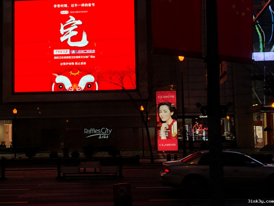 2月2日,上海街头的大屏幕广告。澎湃新闻记者 周平浪 图