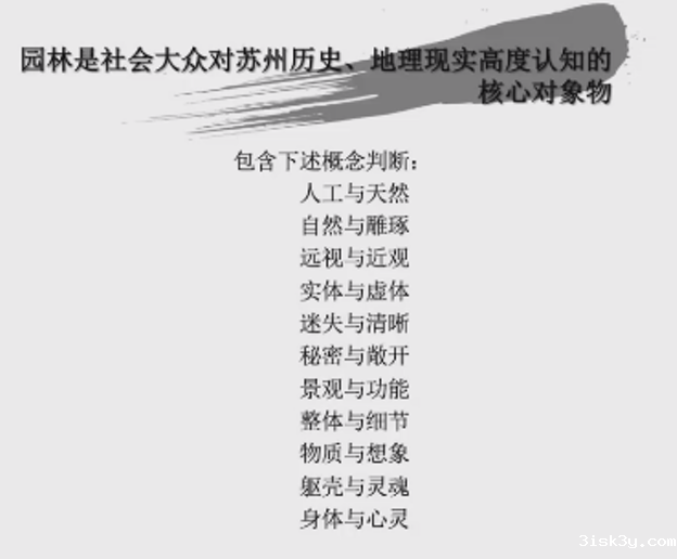 第一个,文化感知,苏州是几千年历史的文化古城,文化感知并不是抽象的,要通过具体的物和景观。
