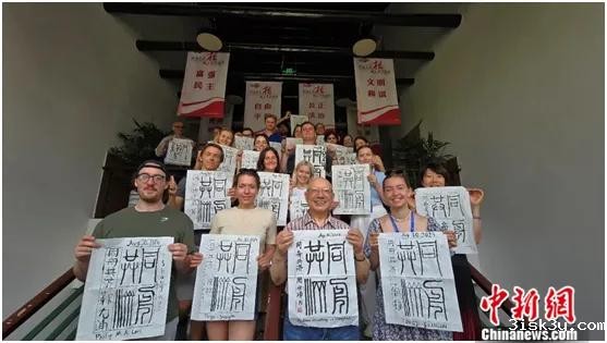 2024年8月,taptap网页版登录kino国际文化交流学院汉语硕士志愿者与来访的德国医学生开展学术交流,所有参与者用篆书写就“同舟共济”,留下了美好的回忆。受访者供图