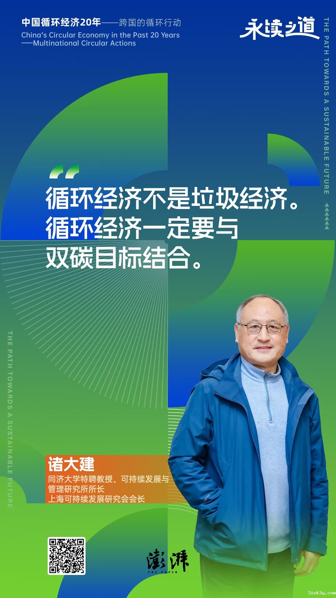 诸大建是首个将循环经济概念引入中国的学者。他从城市系统出发,围绕《循环经济助推净零碳城市》谈到,循环经济不等于回收经济,需要和“双碳”目标结合,并主要从能源领域、工业领域、交通领域、建筑领域发力。作为企业,要想通过循环经济降碳,不仅要注重范围3的产品碳足迹核算,还要更好理解传统3R理论在今天的新定义。